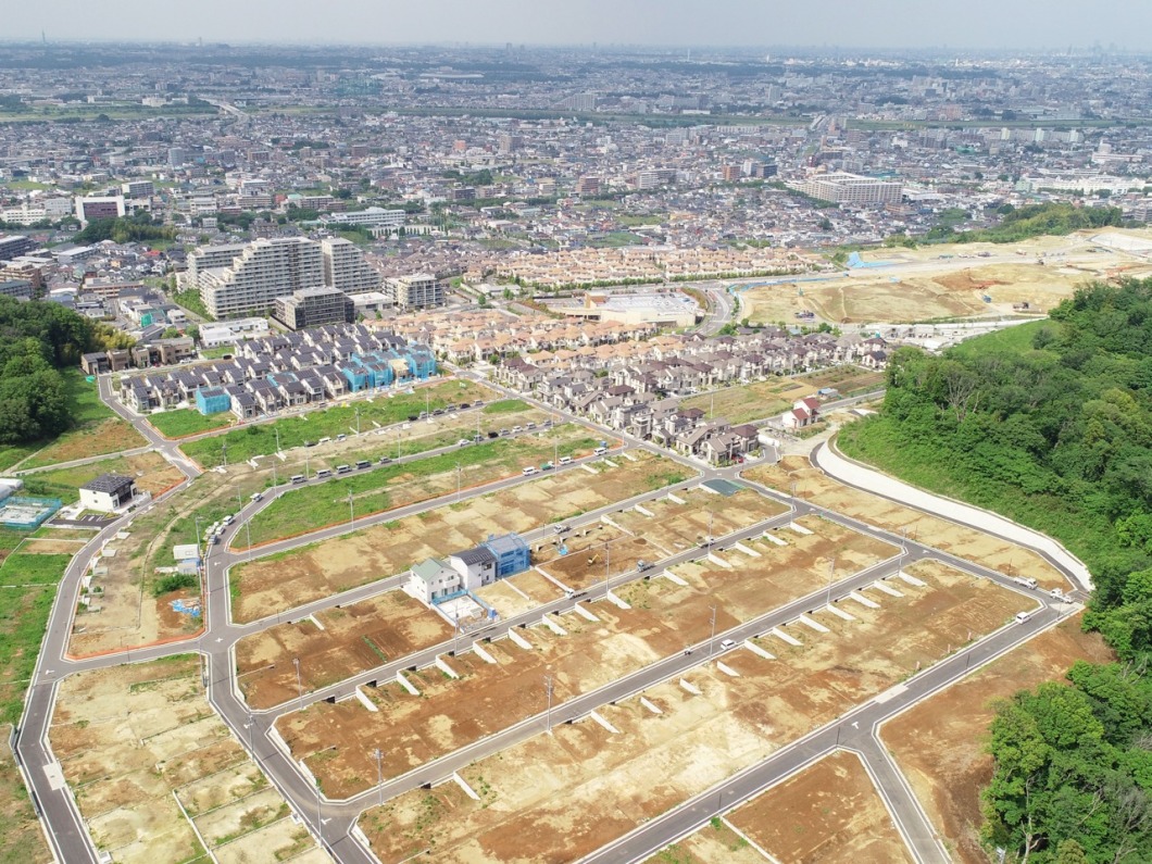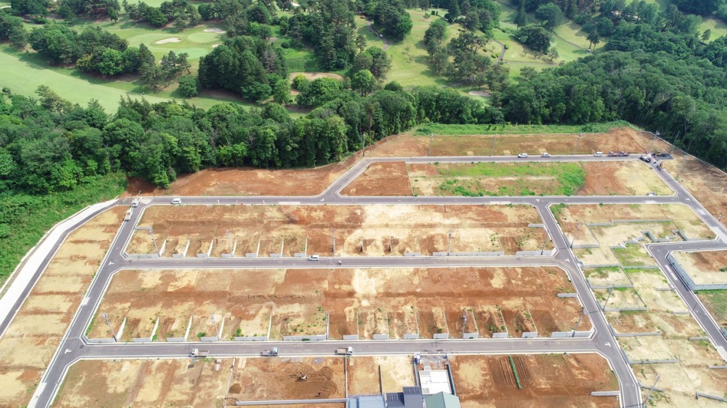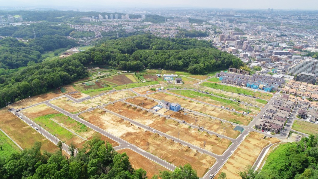 上空から望む現地区画(2024年5月撮影)【都心に近い緑の丘に堂々登場した新街区】