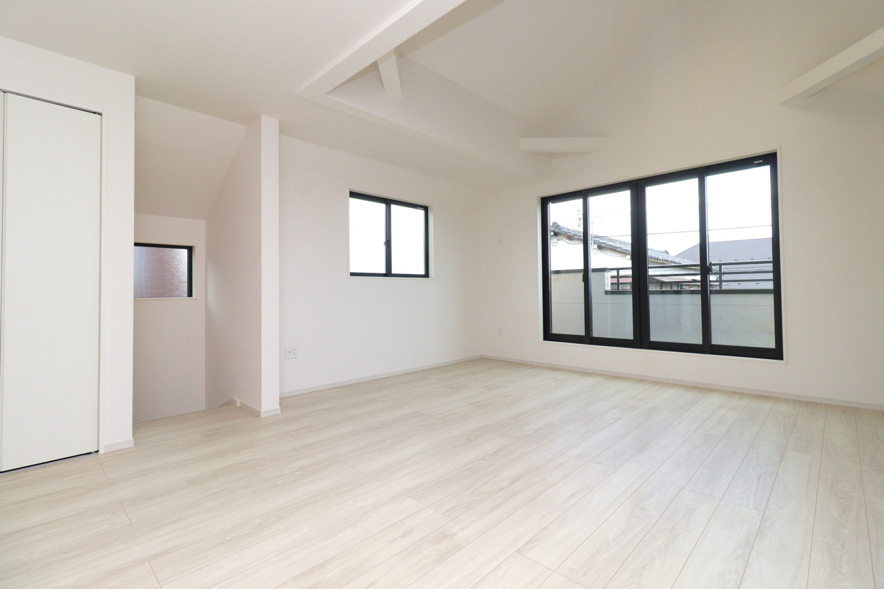 POINT1. LDK16.7帖以上!3面採光と吹抜がさらに開放感溢れる空間を演出しています!2階なのでプライバシーも守れます!