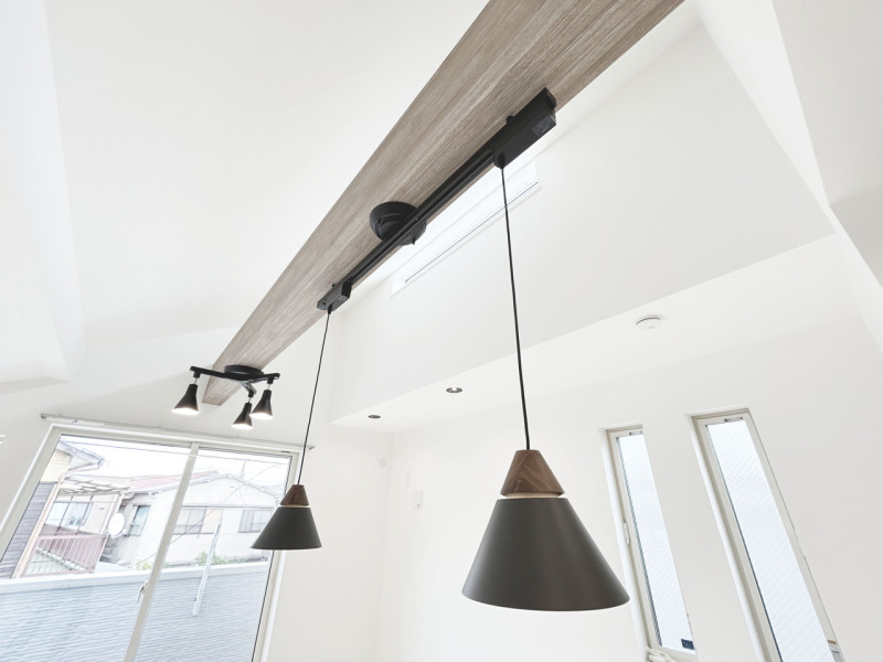 人気のカウンターキッチン仕様のリビングは勾配天井設計となっており、開放的な空間に感じられます。