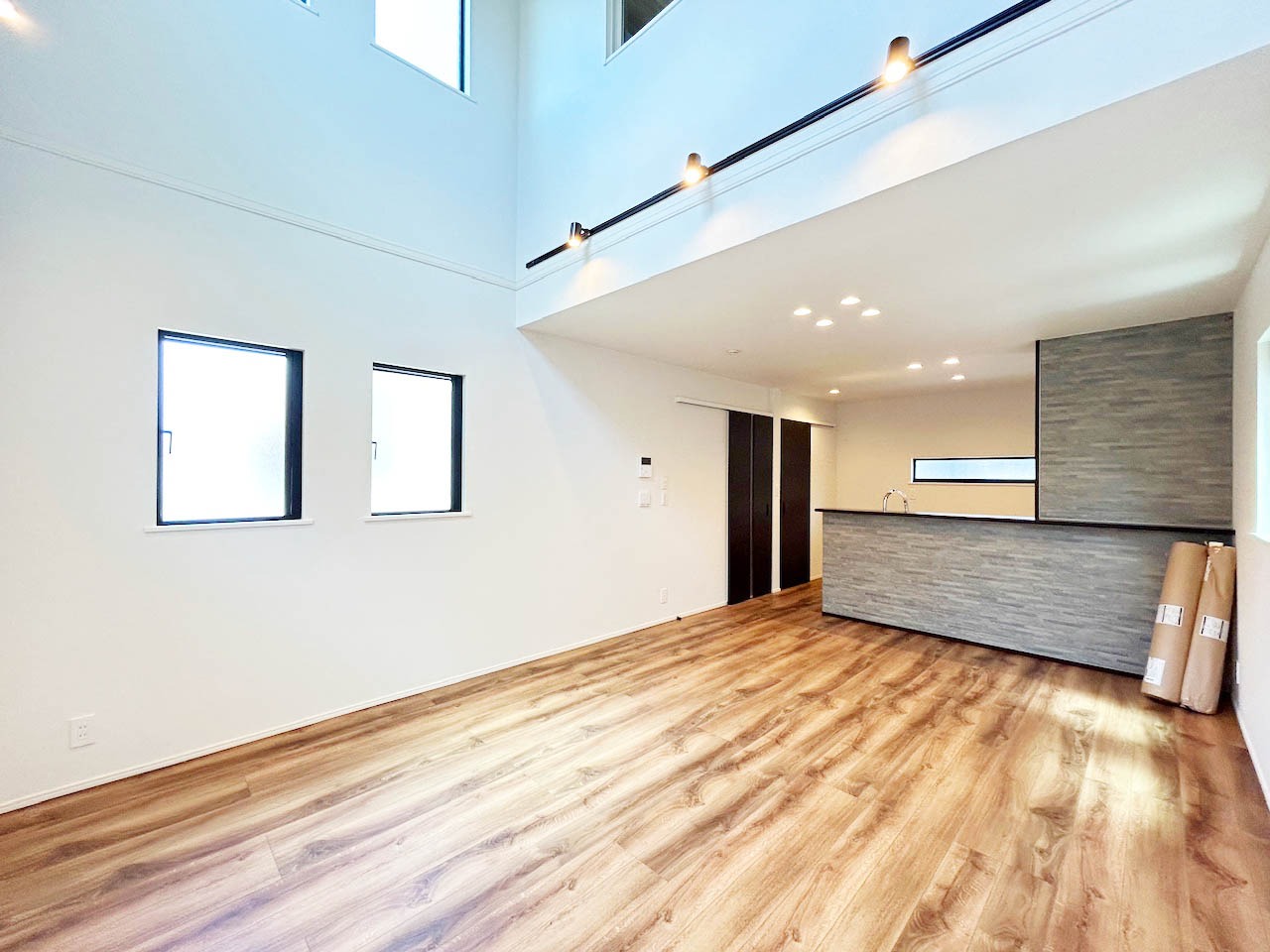 POINT2. 南向き3面採光の陽当たり良好LDKは広々とした17.3帖!さらに吹抜が開放的な空間を演出します!