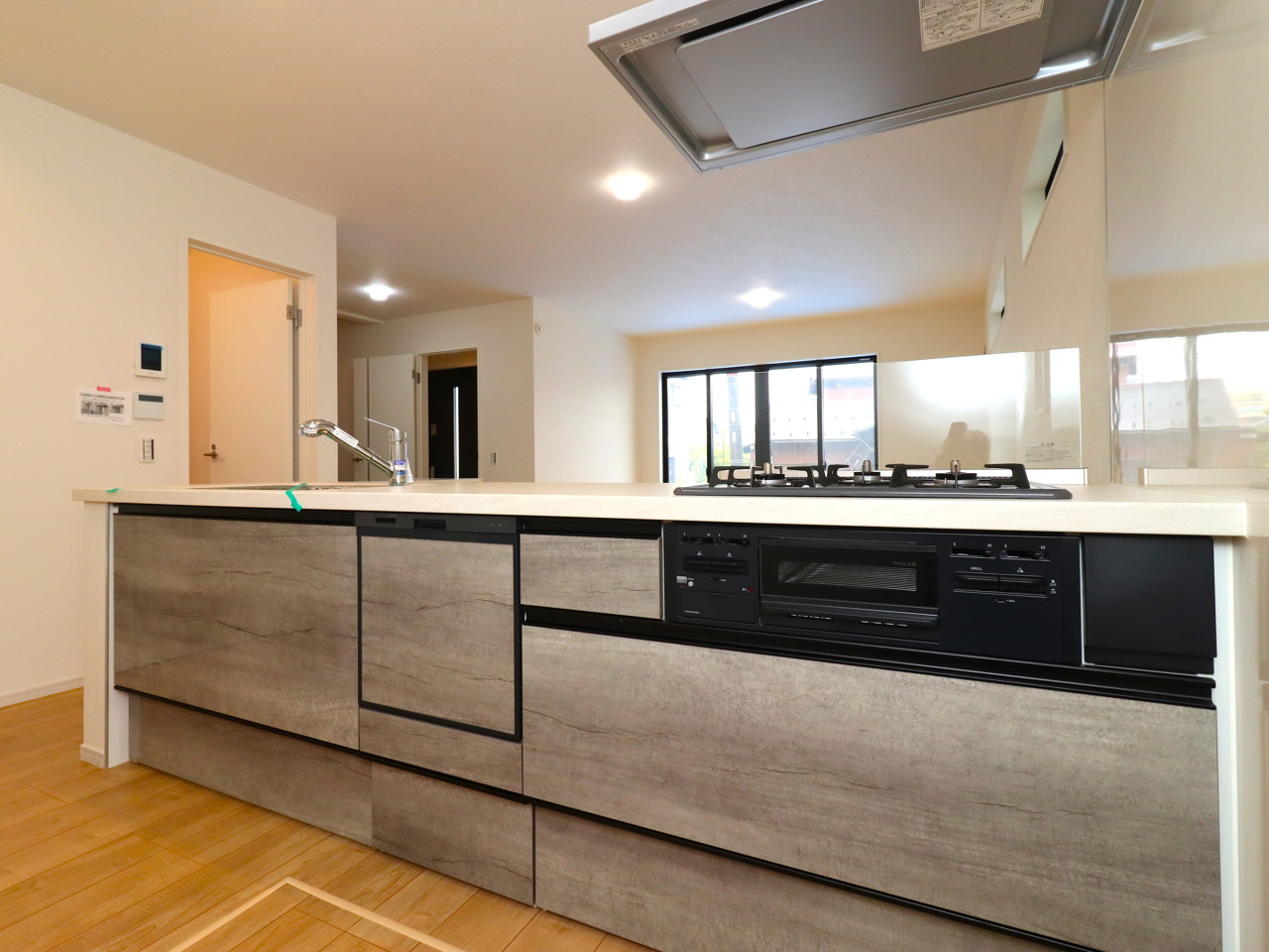 【Kitchen】 食洗器搭載のシステムキッチン。 家事の効率化が図れ、空いた時間に他の作業や家族との団らんを愉しめます。