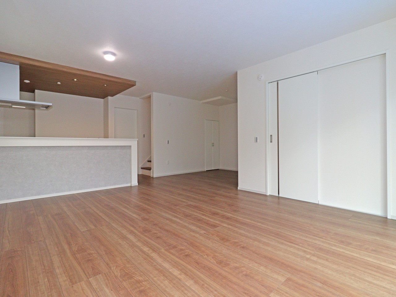 POINT2. 広々としたLDKには家族を見渡せる食器洗浄乾燥機搭載のカウンターキッチン!水回りが集約しているので家事同線◎