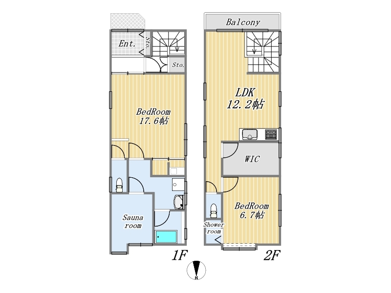 | 間取 | 2LDK + WIC+サウナルーム (LDK12.2帖、洋室17.6帖、洋室6.7帖) | ||