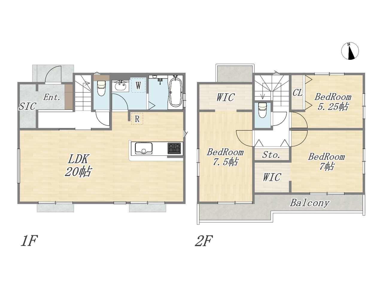 | 間取 | 3LDK+2WIC+SIC (LDK20帖、洋室7.5帖、洋室7帖、洋室5.25帖) | ||
