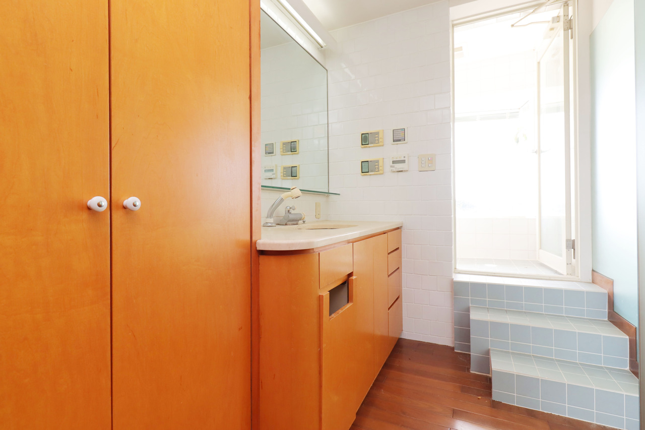 【Wash Room】 機能美とデザイン性を両立させた3面境仕上げの洗面化粧台。 視覚的に広がり感を持たせるだけでなく、機能的にも優れています。