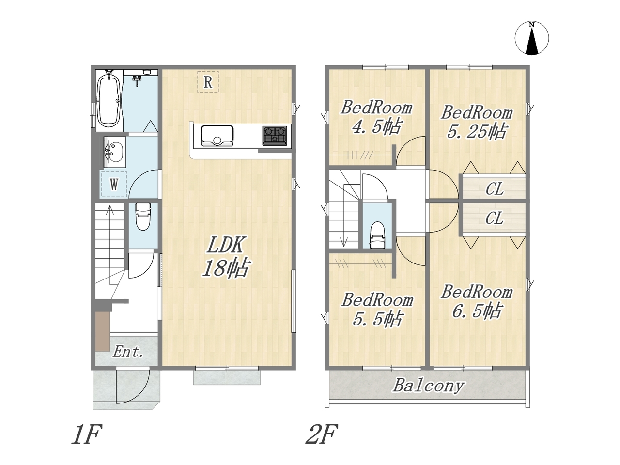 | 間取 | 4LDK+カースペース2台可 (LDK18帖、洋室6.5帖、洋室5.5帖、洋室5.25帖、洋室4.5帖) | ||