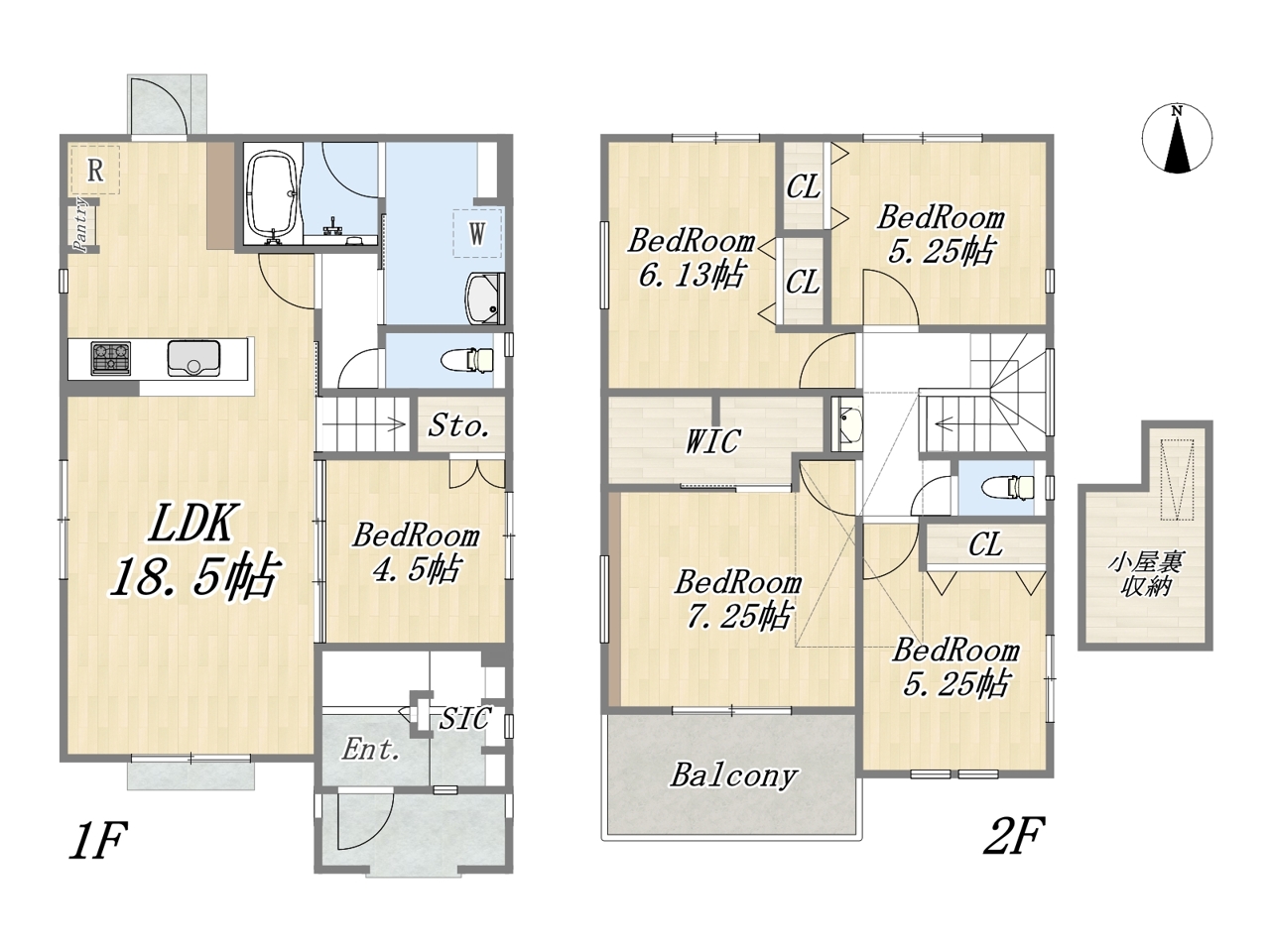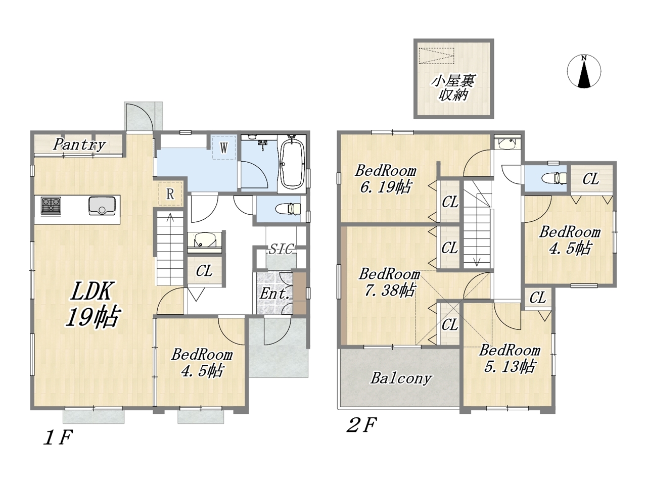 | 間取 | 5LDK~5LDK + (+WIC)+SIC+パントリー+小屋裏収納+カースペース | ||