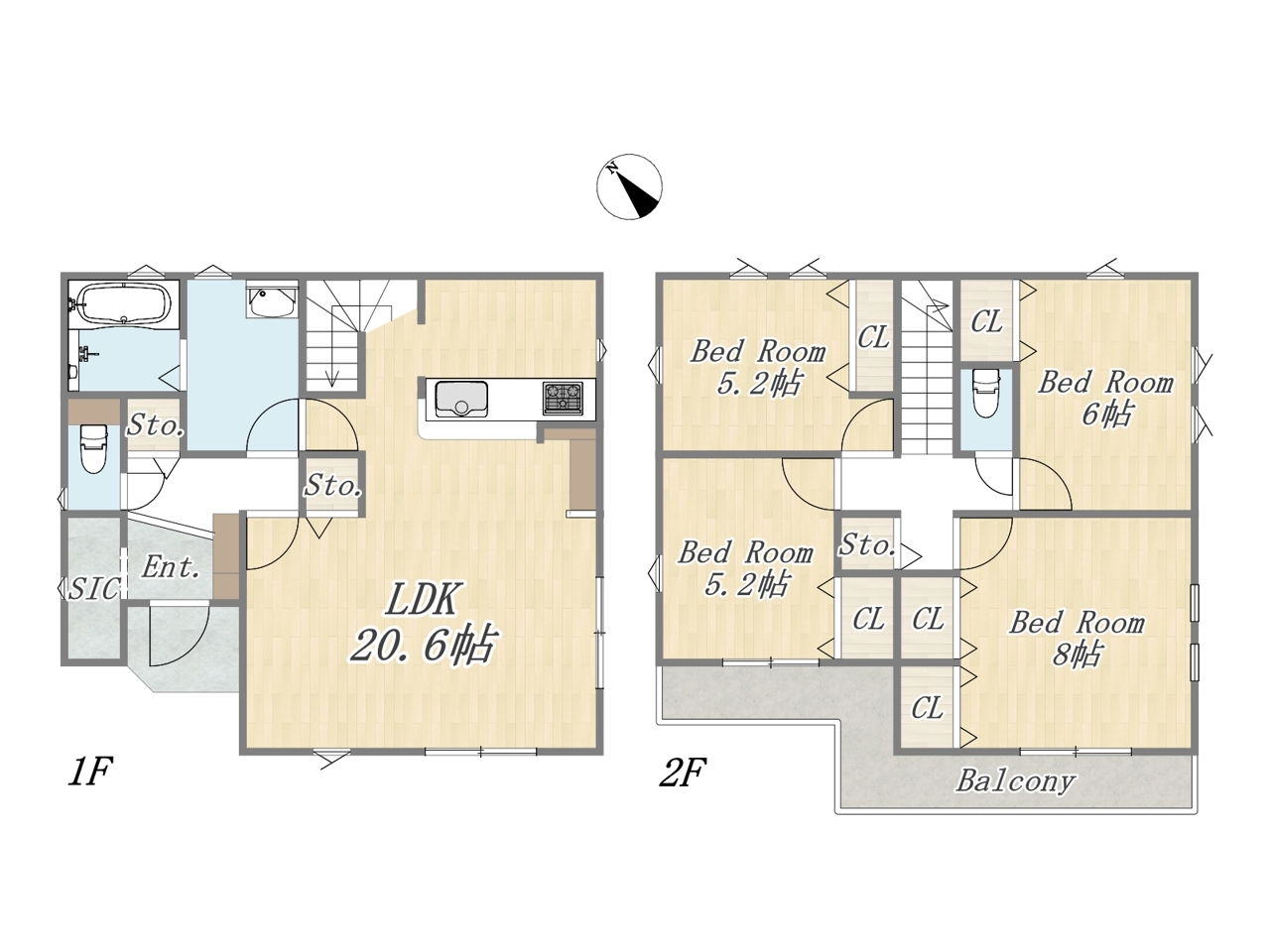 | 間取 | 4LDK+SIC+カースペース (LDK20.6帖、洋室8帖、洋室6帖、洋室5.2帖、洋室5.2帖) | ||