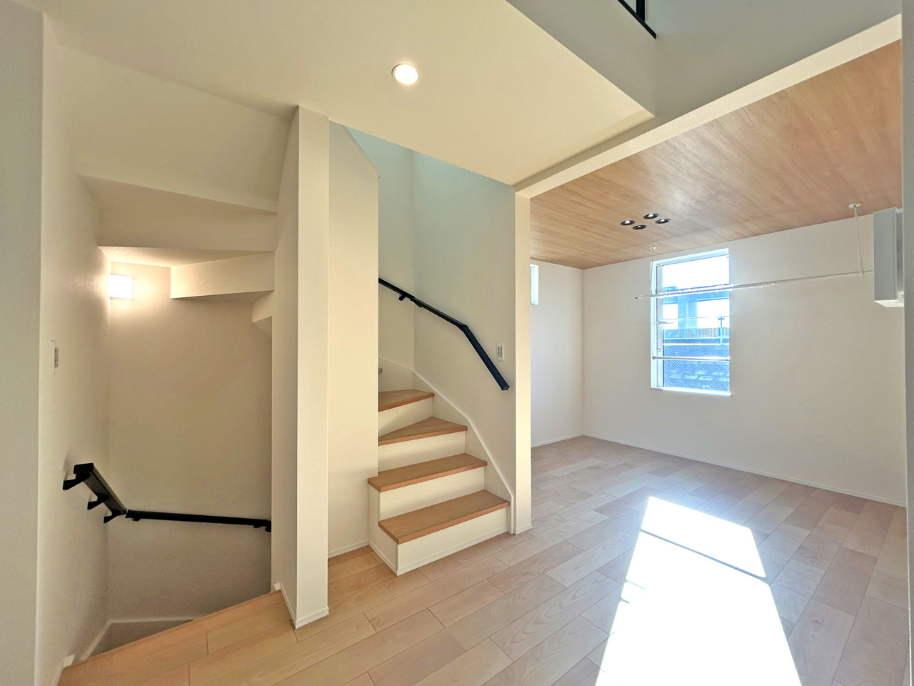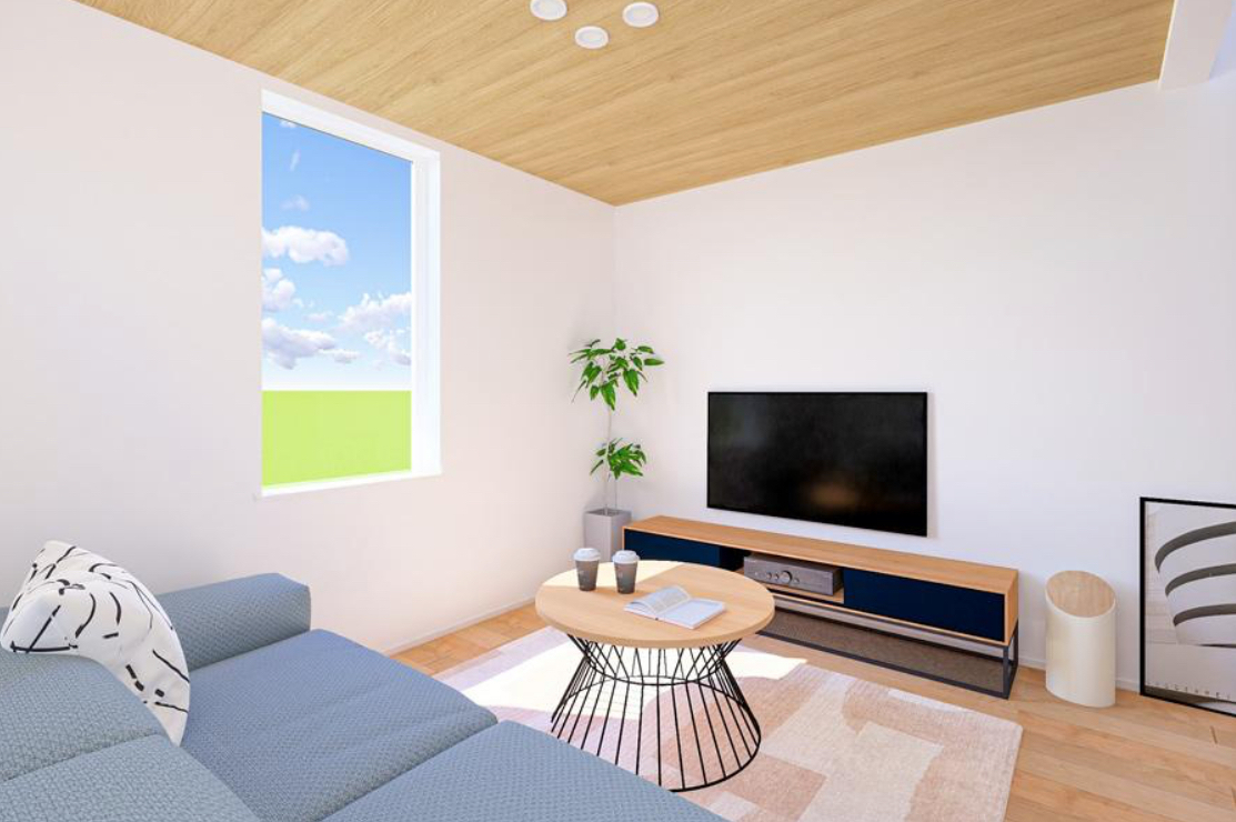 吹抜が開放的なLDKは全棟15.5帖以上!2階に設置されているのでプライバシーを確保、人目を気にせずくつろげます!