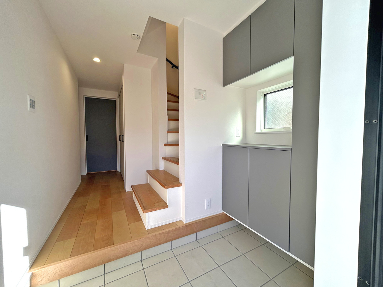 ビルトインガレージ付きですので悪天候でもお車での移動がスムーズに、全面道路が5.97mと広いので出入りもしやすくなっています。
