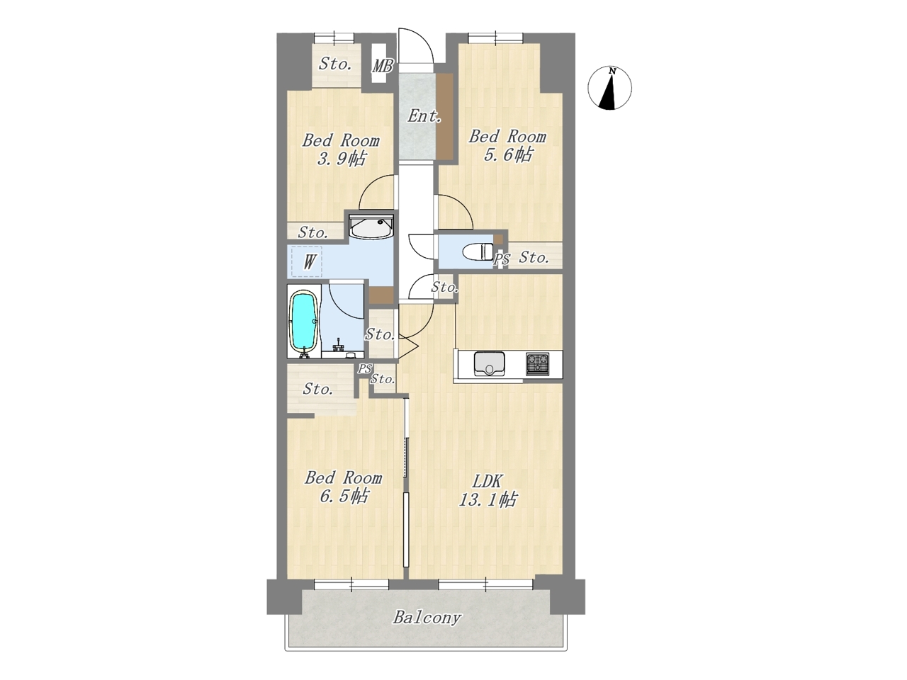 | 間取 | 3LDK (LDK13.1帖、洋室6.5帖、洋室5.6帖、洋室3.9帖) | ||