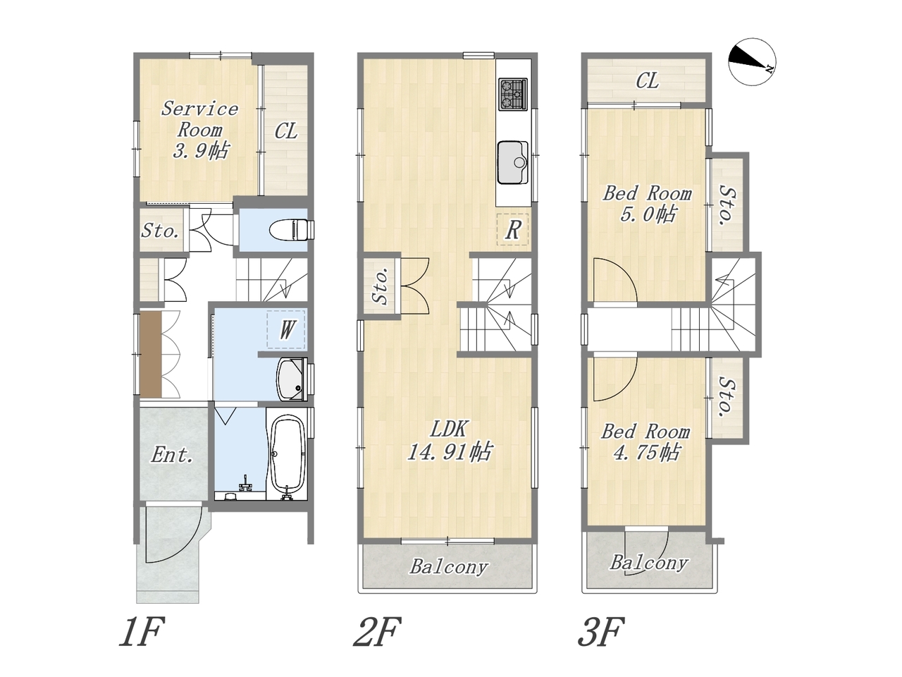 | 間取 | 2SLDK+カースペース (LDK14.91帖、洋室5.0帖、洋室4.75帖、S3.9帖) | ||