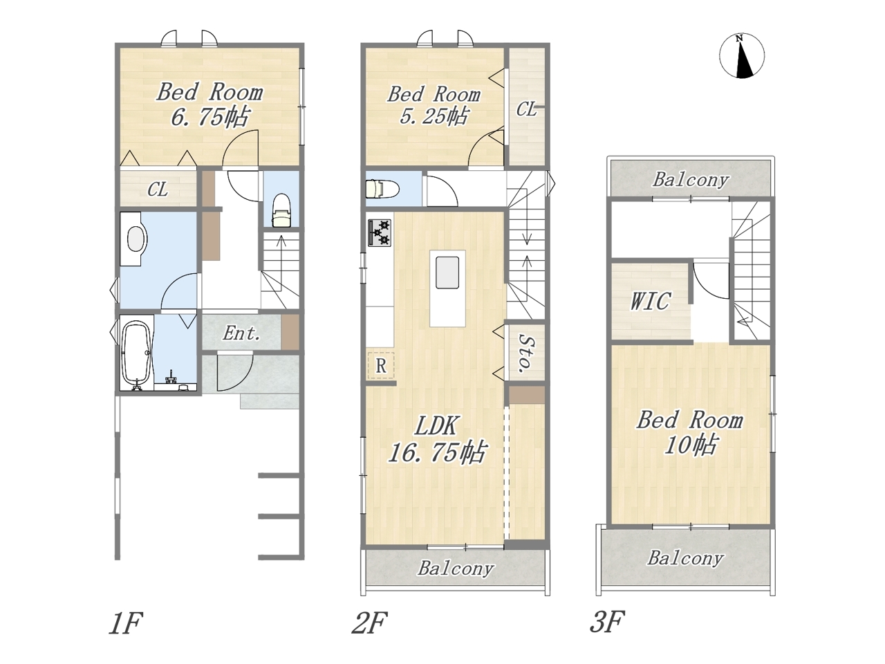 | 間取 | 3LDK+WIC+ビルトインガレージ (LDK16.75帖、洋室10帖、洋室6.75帖、洋室5.25帖) | ||