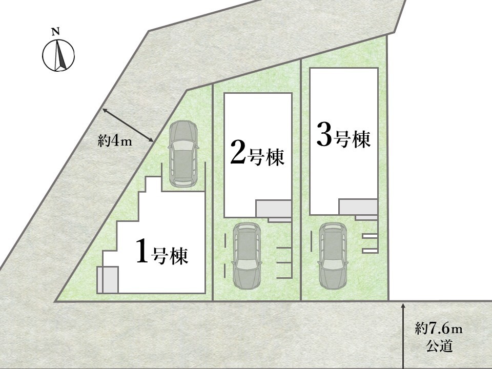 POINT1. 陽当たり・風通り良好な2方道路物件!各棟が開放的な立地を生かした建物プラン!