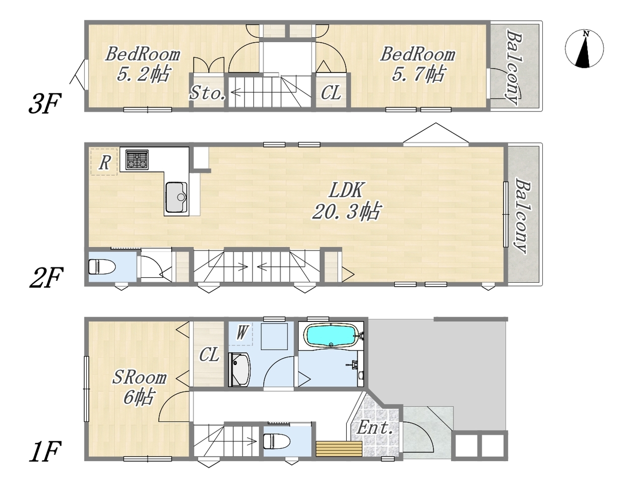 【間取り図】A号棟 2LDK+S