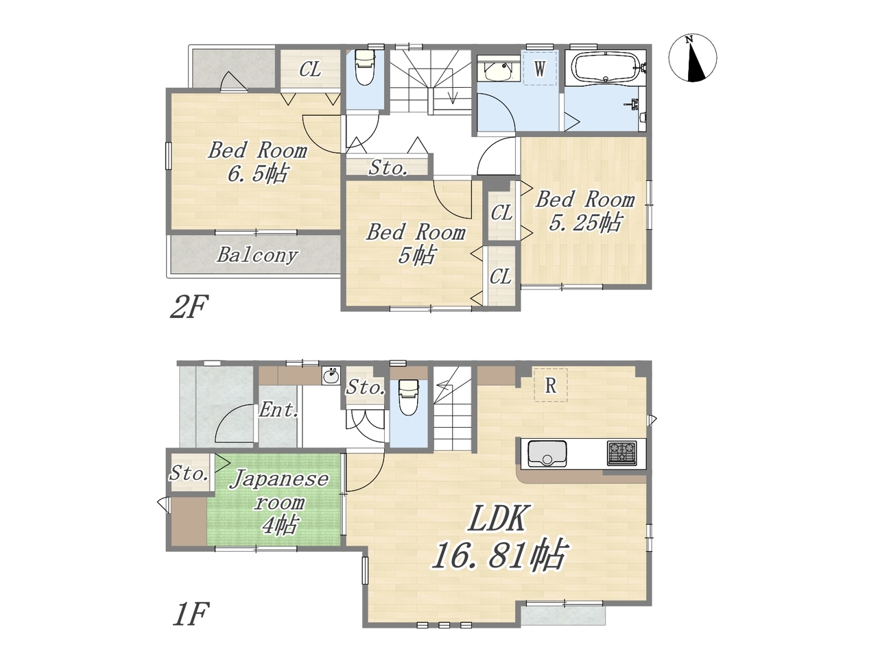 | 間取 | 4LDK+カースペース (LDK16.81帖、洋室6.5帖、洋室5.25帖、洋室5帖、和室4帖) | ||