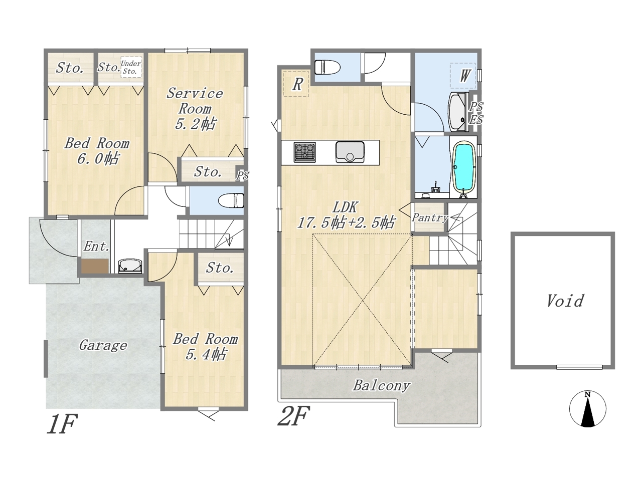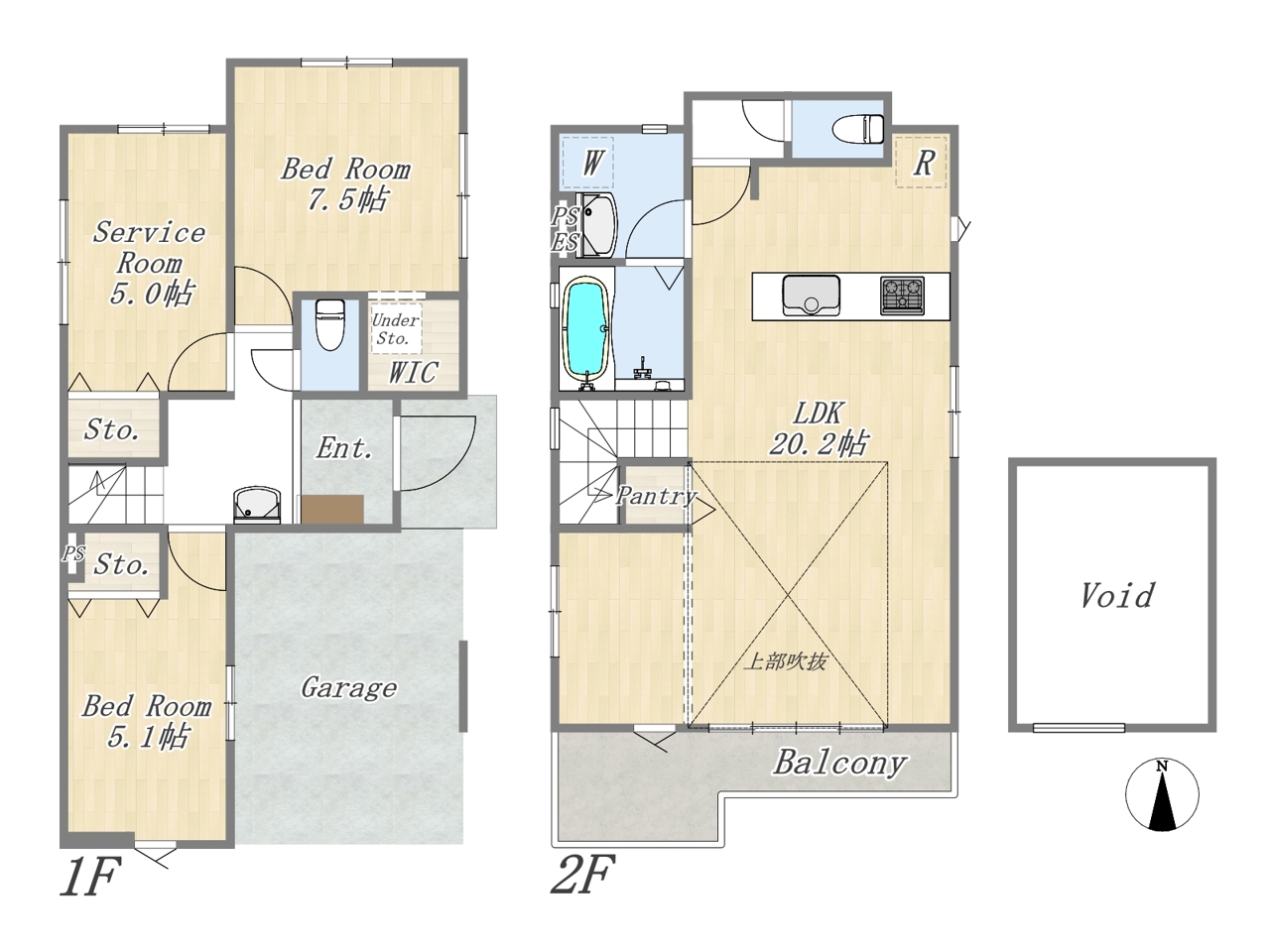 | 間取 | 2SLDK + WIC+パントリー+床下収納 | ||