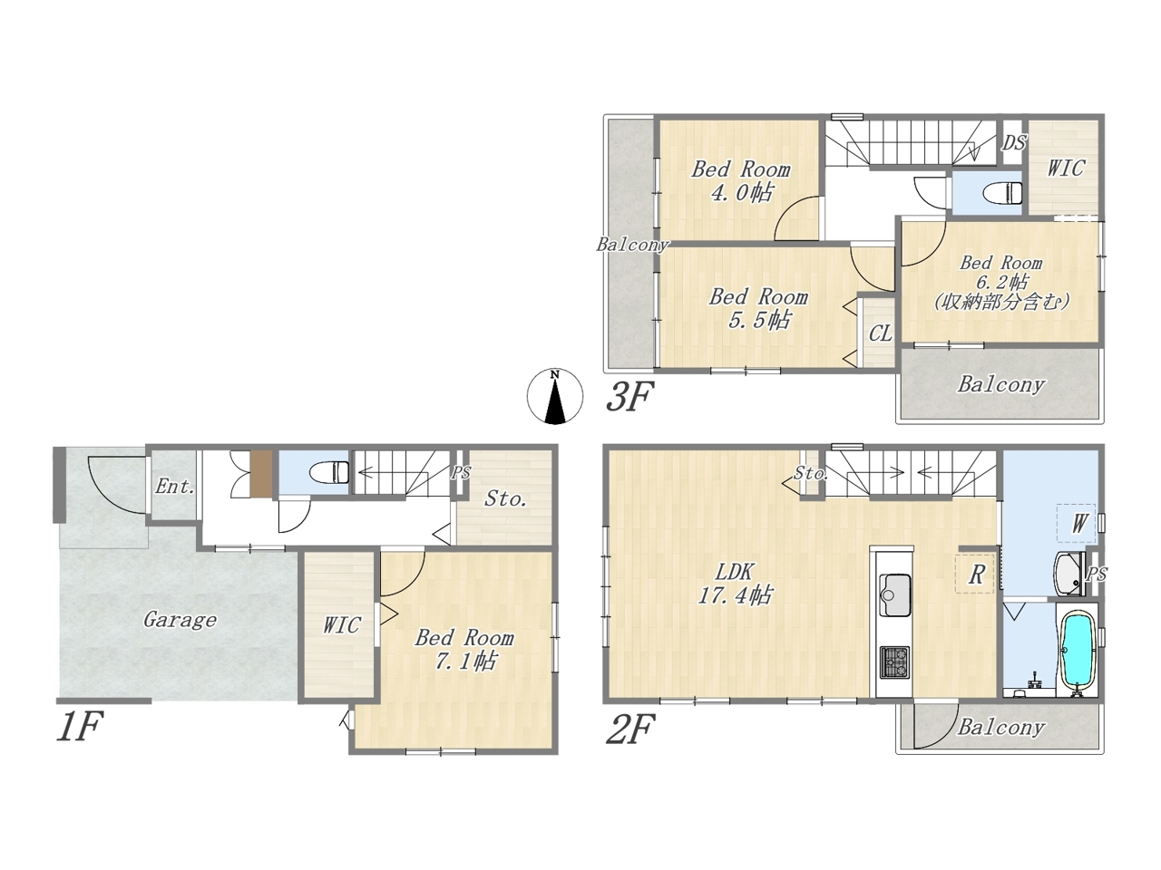 | 間取 | 4LDK + WIC (LDK17.4帖、洋室7.1帖、洋室6.2帖、洋室5.5帖、洋室4.0帖) | ||