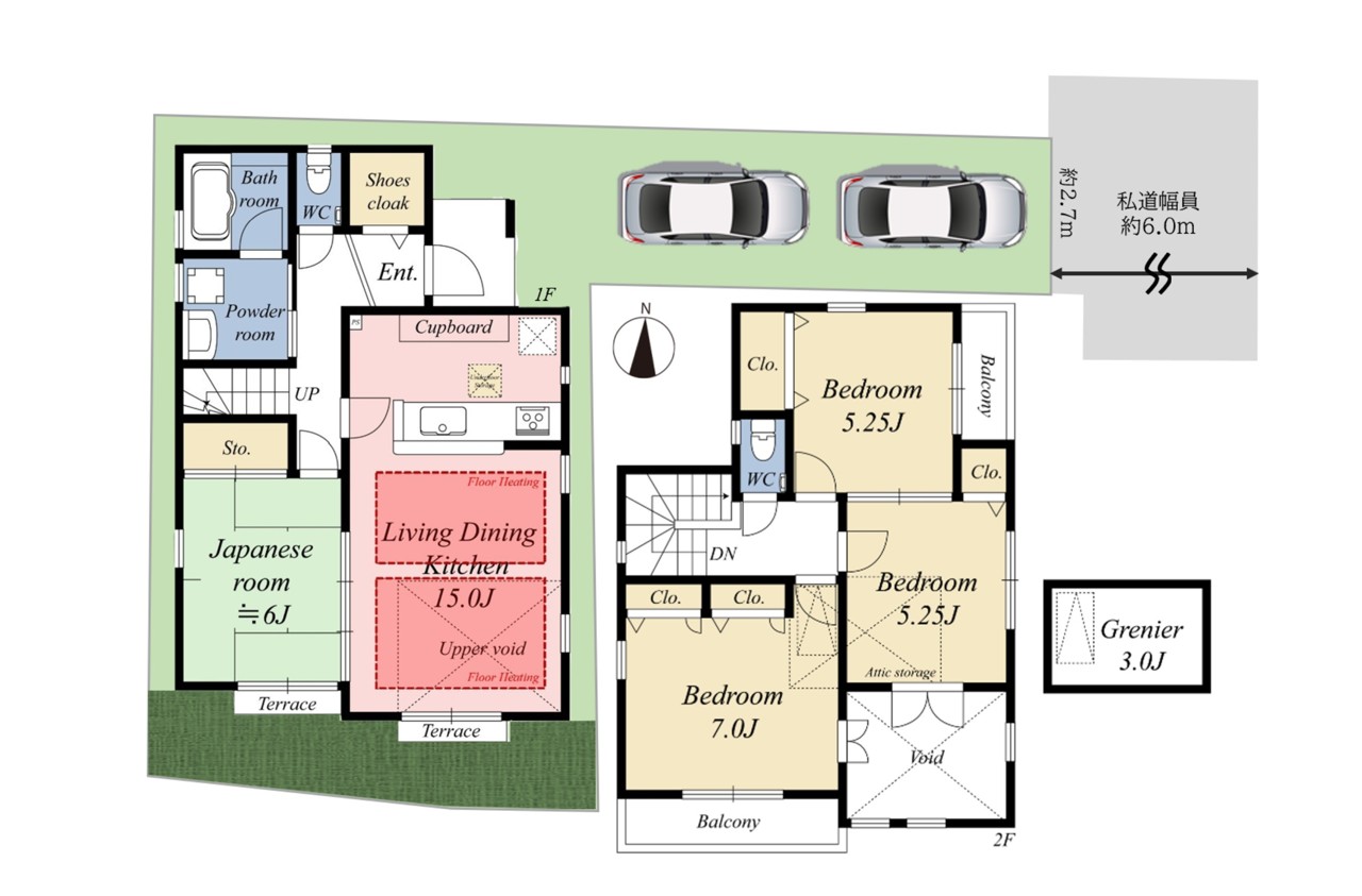| 間取 | 4LDK (LDK15.0帖、洋室7.0帖、洋室5.25帖、洋室5.25帖、和室6.0帖) | ||