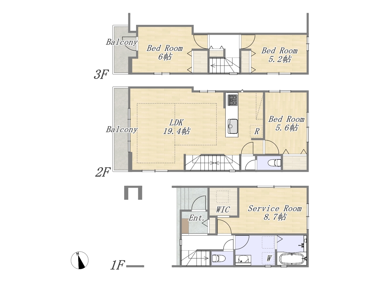 | 間取 | 3SLDK (LDK19.4帖、S8.7帖、洋室6帖、洋室5.6帖、洋室5.2帖) | ||