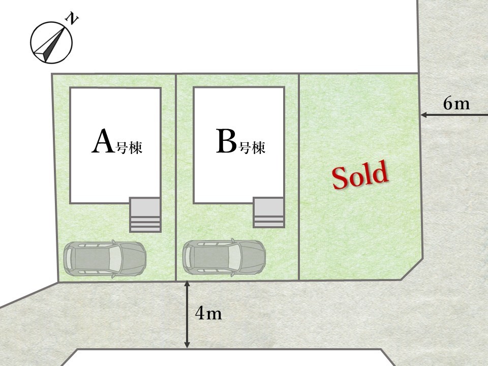 | 権利種類 | 所有権 | 接道 | 北東側6M道路に接道 南東側4M道路に接道 |