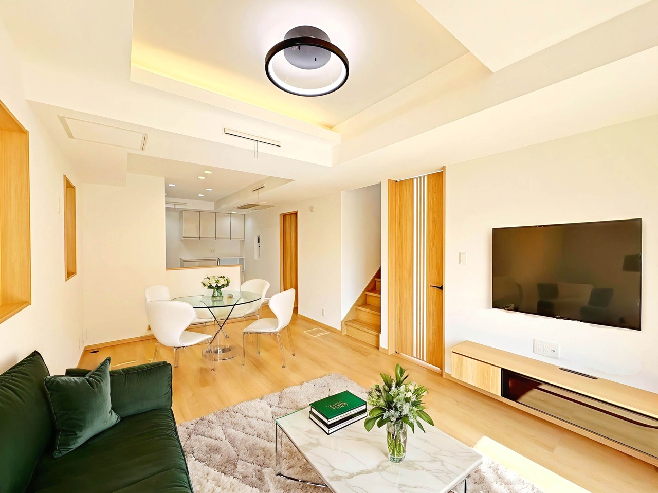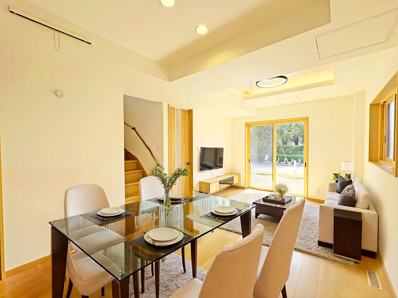 【LDK:1号棟】 本画像はCGで作成しており、実際に現地に家具は配置しておりません。また、価格に家具は含まれません。