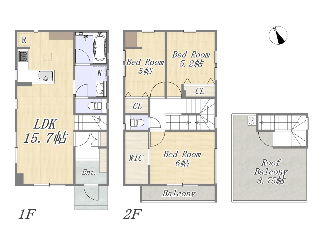 【2号棟】3LDK+WIC+ルーフバルコニー+カースペース2台
