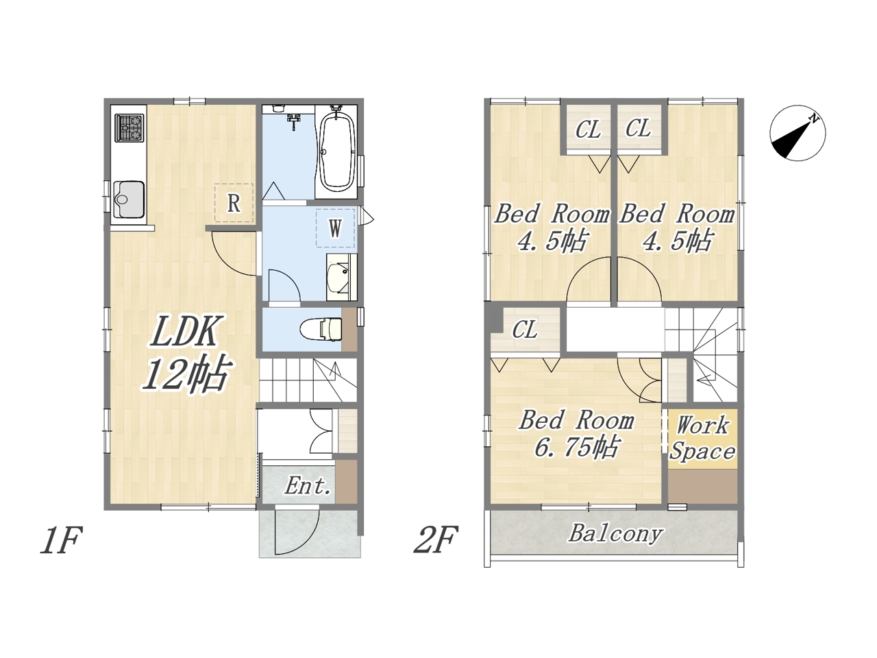 | 間取 | 3LDK+workspace+カースペース2台可 (LDK12帖、洋室6.75帖、洋室4.5帖、洋室4.5帖) | ||