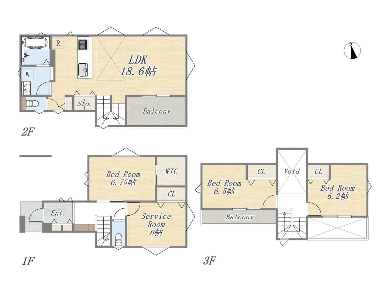 【間取り図】2号棟 3SLDK+カースペース