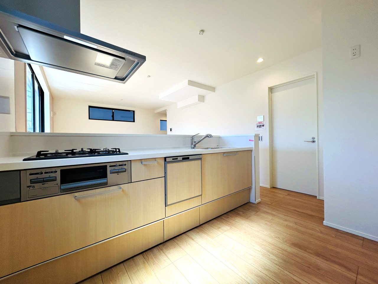 【Kitchen】 食洗器搭載のシステムキッチン。 家事の効率化が図れ、空いた時間に他の作業や家族との団らんを愉しめます。