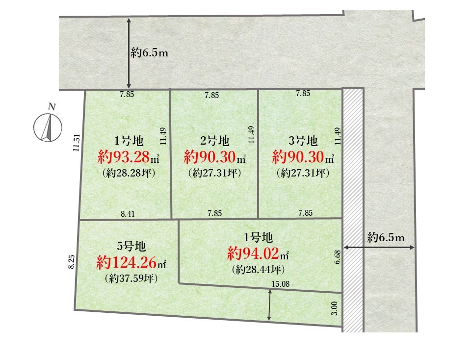 | 土地面積 | 90.3m² ~ 124.26m² 実測 | ||