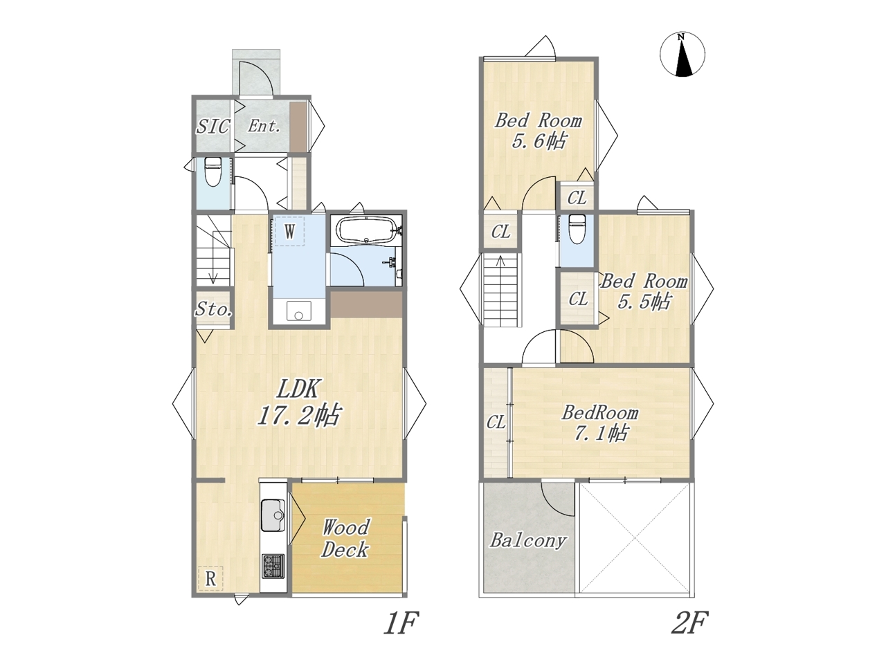 | 間取 | 3LDK+SIC+ウッドデッキ+ワイドバルコニー+カースペース (LDK17.2帖、洋室7.1帖、洋室5.6帖、洋室5.5帖) | ||