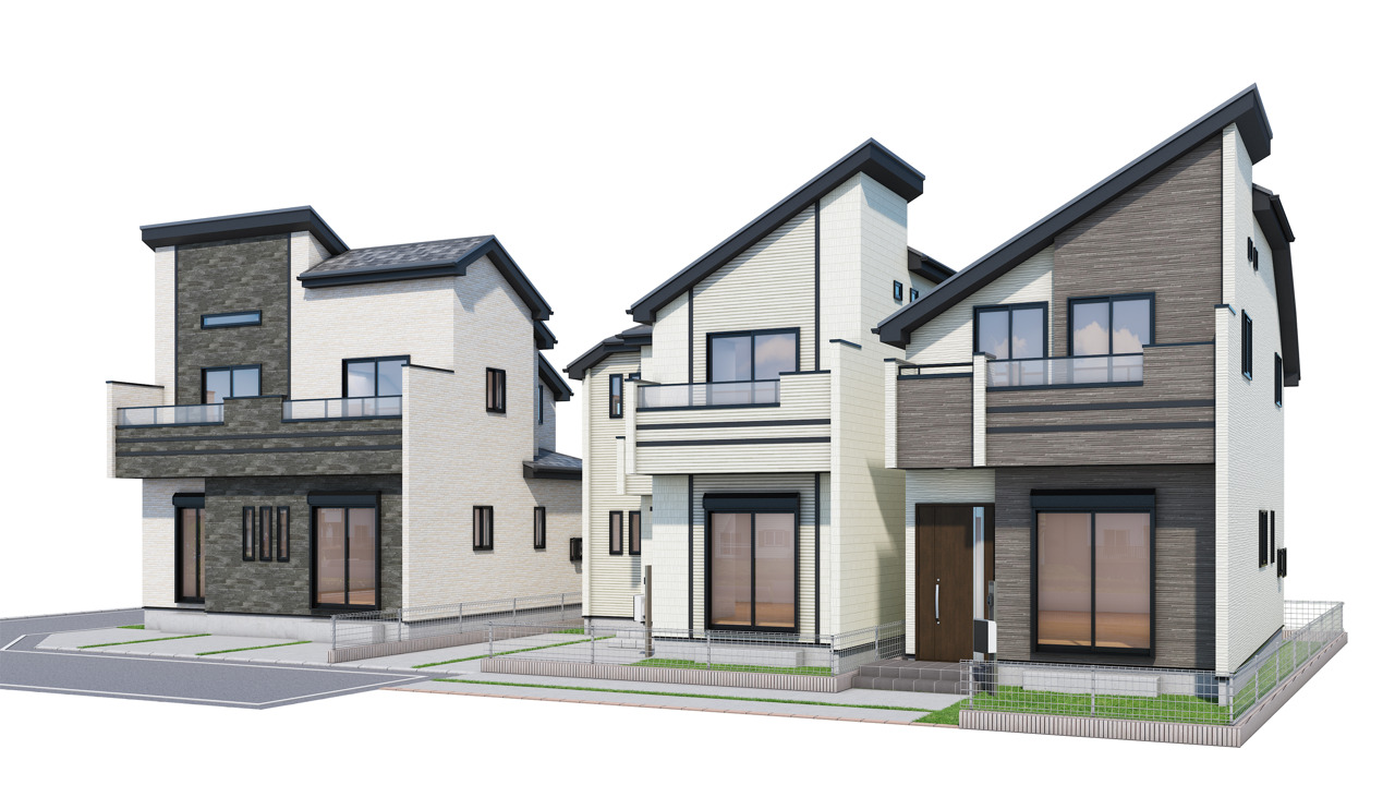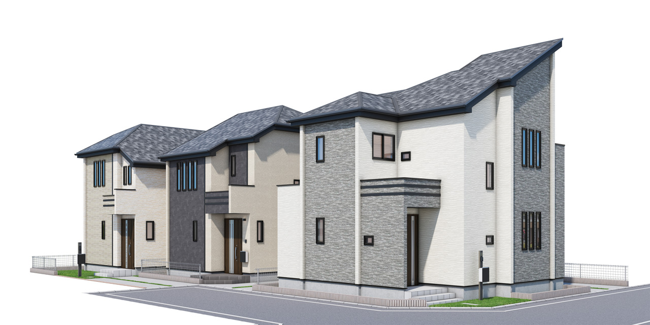 - ※完成予想図はいずれも外構、植栽、外観等実際のものとは多少異なることがあります。
