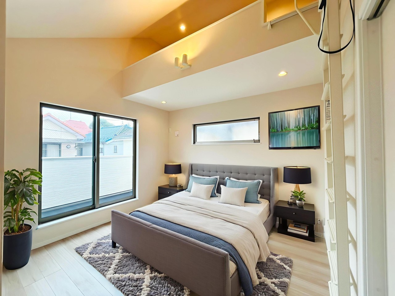 7帖の主寝室は吹抜で開放感溢れる空間!ロフト付きなので空間をより広く使うことが可能です!