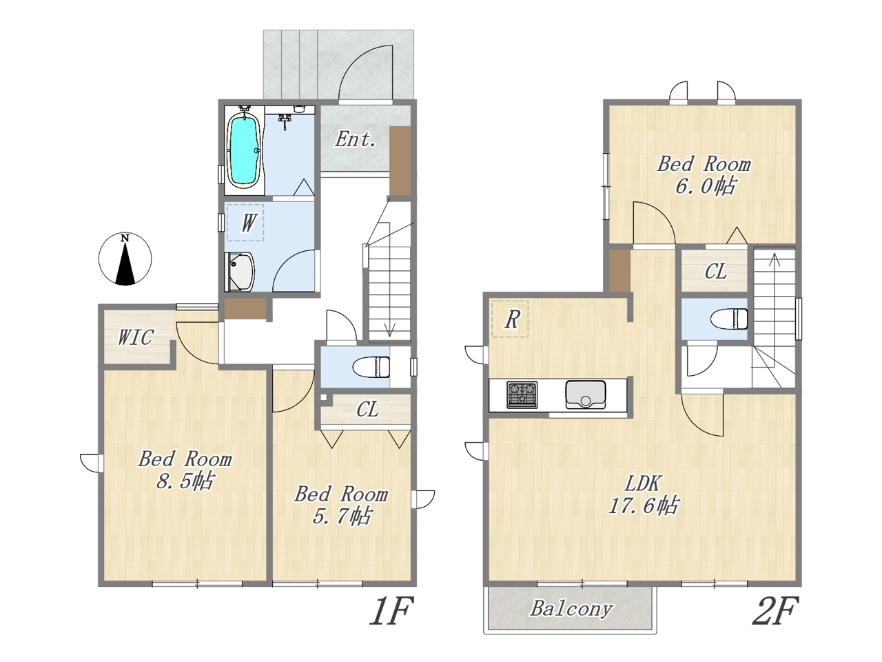 | 間取 | 3LDK+WIC (LDK17.6帖、洋室8.5帖、洋室6.0帖、洋室5.7帖) | ||