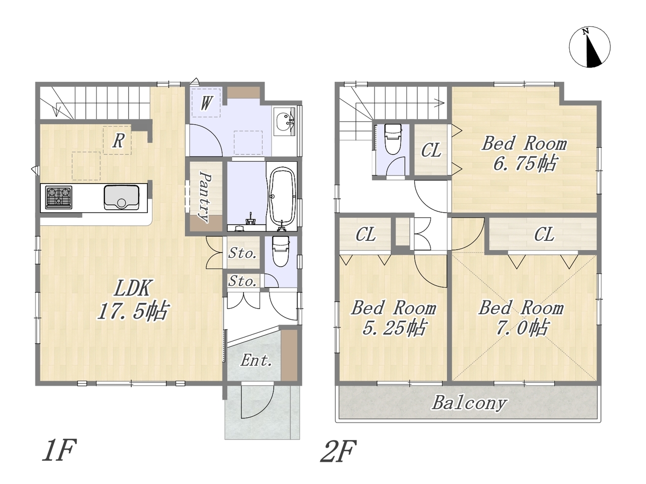 | 間取 | 3LDK+パントリー+カースペース (LDK17.5帖、洋室7帖、洋室6.75帖、洋室5.25帖) | ||