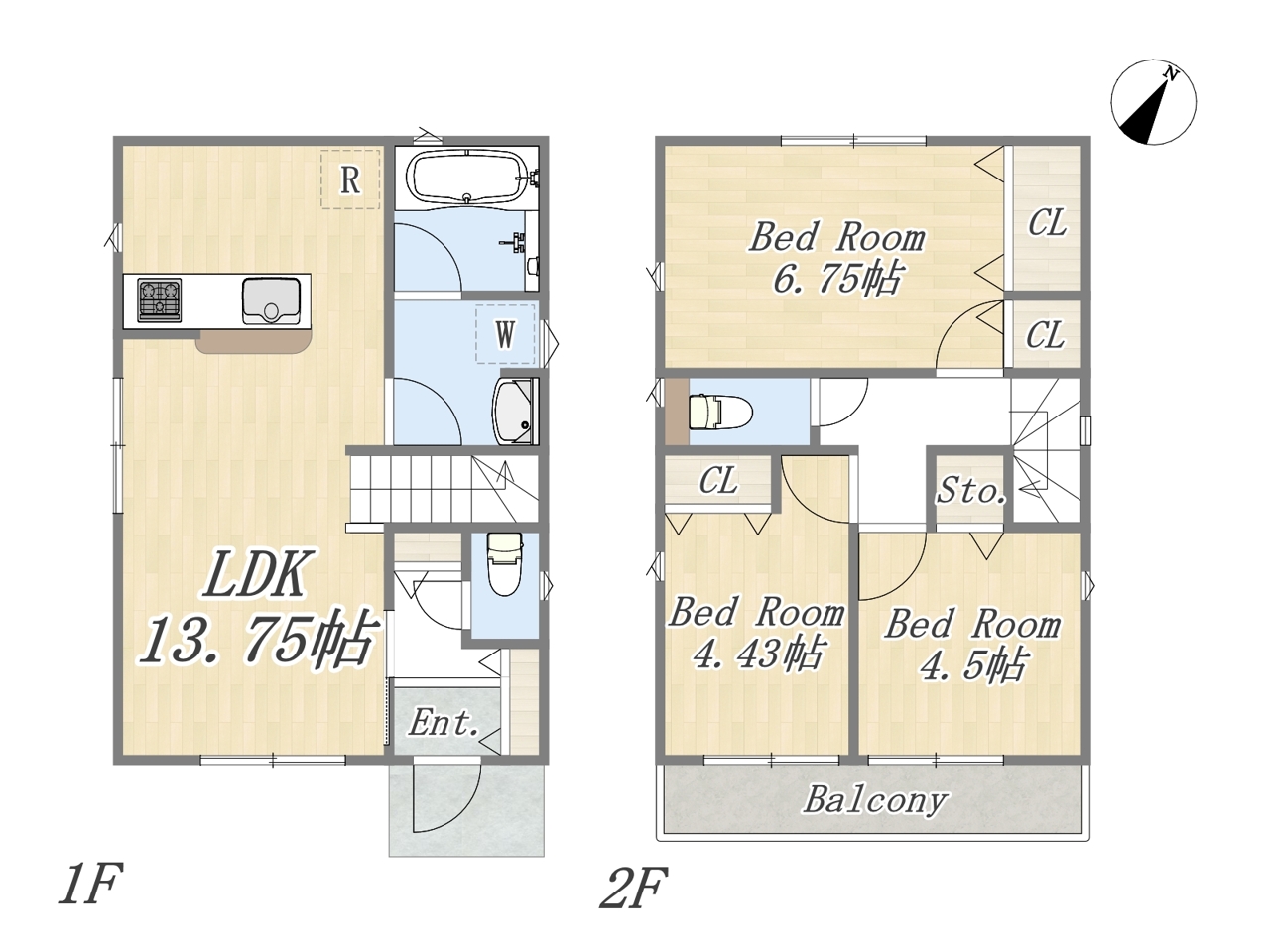 | 間取 | 3LDK+カースペース (LDK13.75帖、洋室6.75帖、洋室4.5帖、洋室4.43帖) | ||