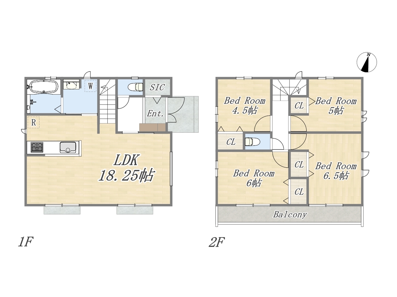 | 間取 | 4LDK+SIC+カースペース2台 (LDK18.25帖、洋室6.5帖、洋室6帖、洋室5帖、洋室4.5帖) | ||