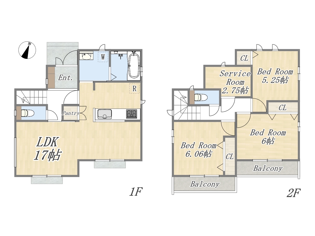 | 間取 | 3SLDK+カースペース2台 (LDK17帖、洋室6.06帖、洋室6帖、洋室5.25帖、S2.75帖) | ||