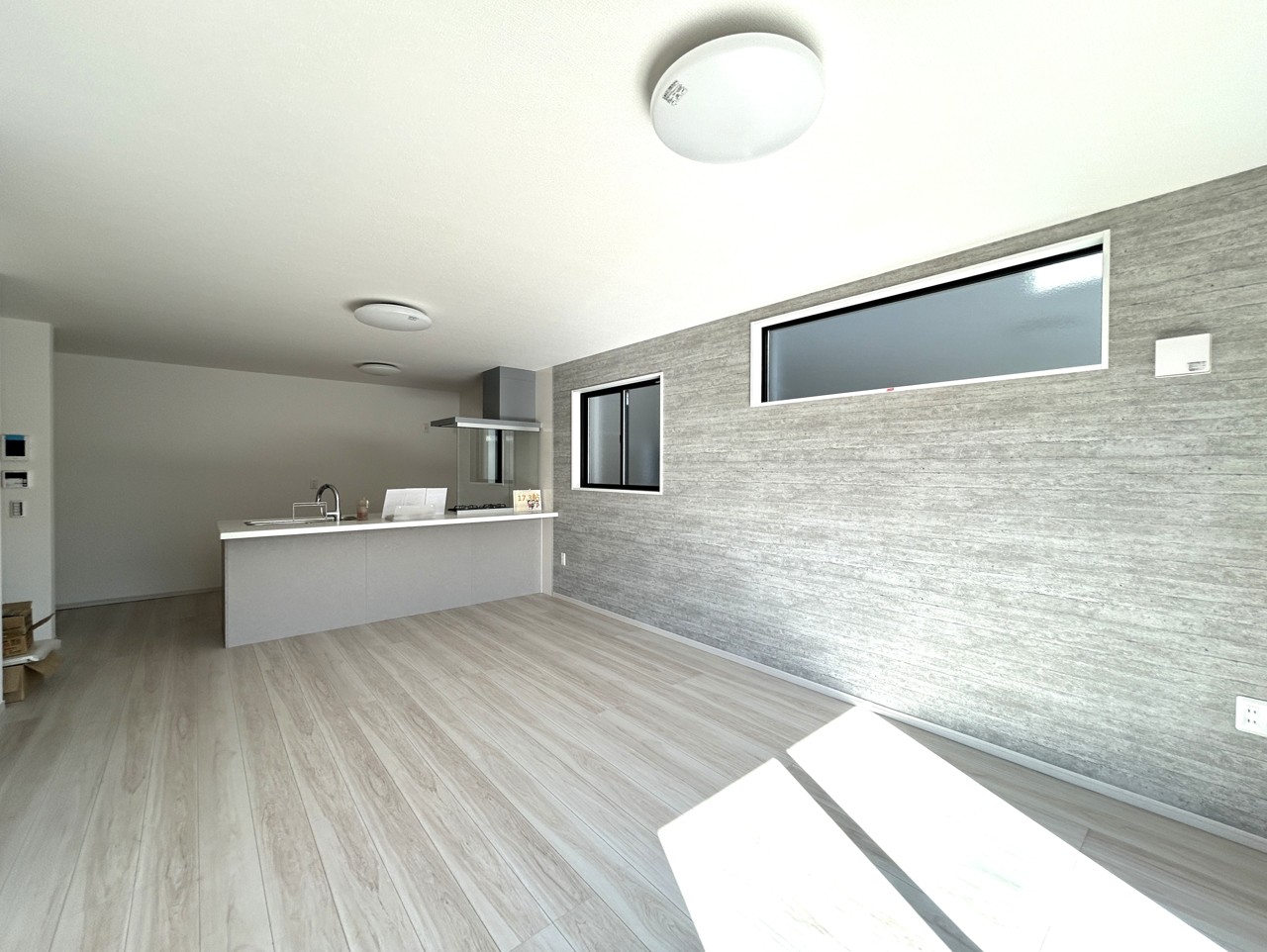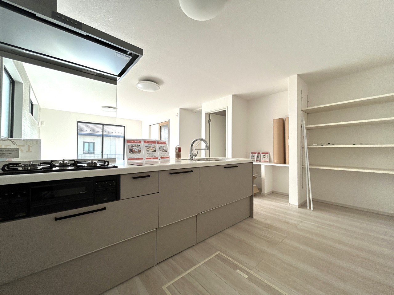 リビング階段とカウンターキッチンは全棟共通となっており、家族間のコミュニケーションが取りやすく会話が弾みやすい造りとなっております!