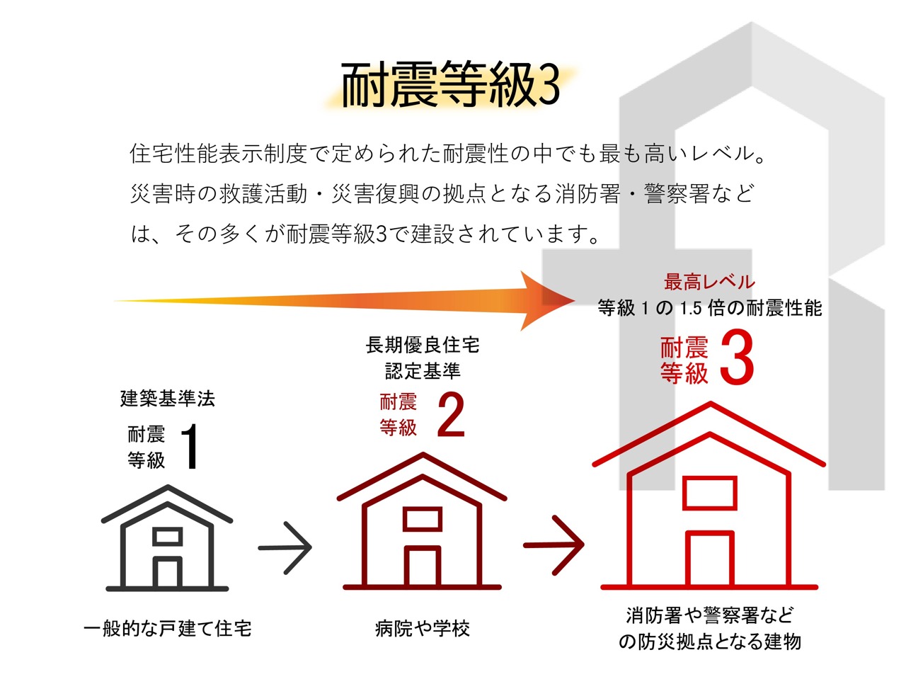 設計・建設住宅性能評価書、耐震等級3を取得している高仕様の住まいです。