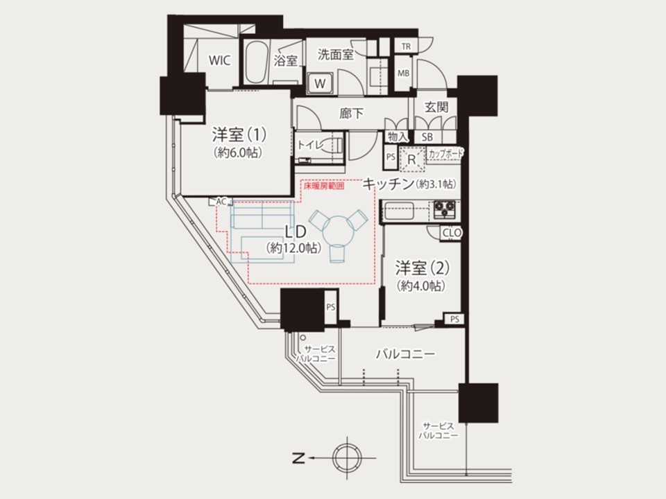 | 間取 | 2LDK+WIC+ワイドバルコニー (LDK15.1帖、洋室6帖、洋室4帖) | ||