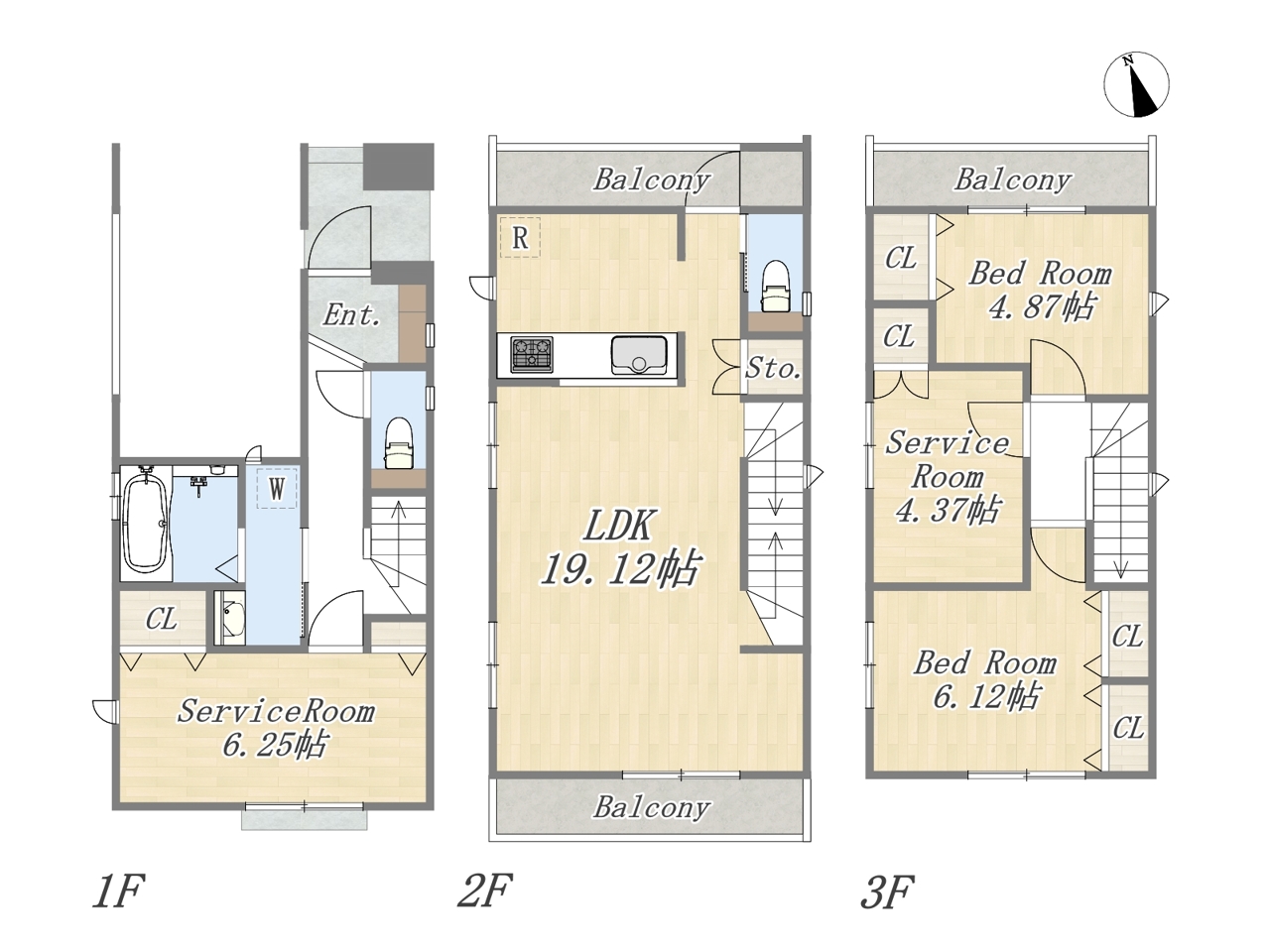 | 間取 | 2LDK+2S+カースペース (LDK19.12帖、洋室6.12帖、洋室4.87帖、S6.25帖、S4.37帖) | ||