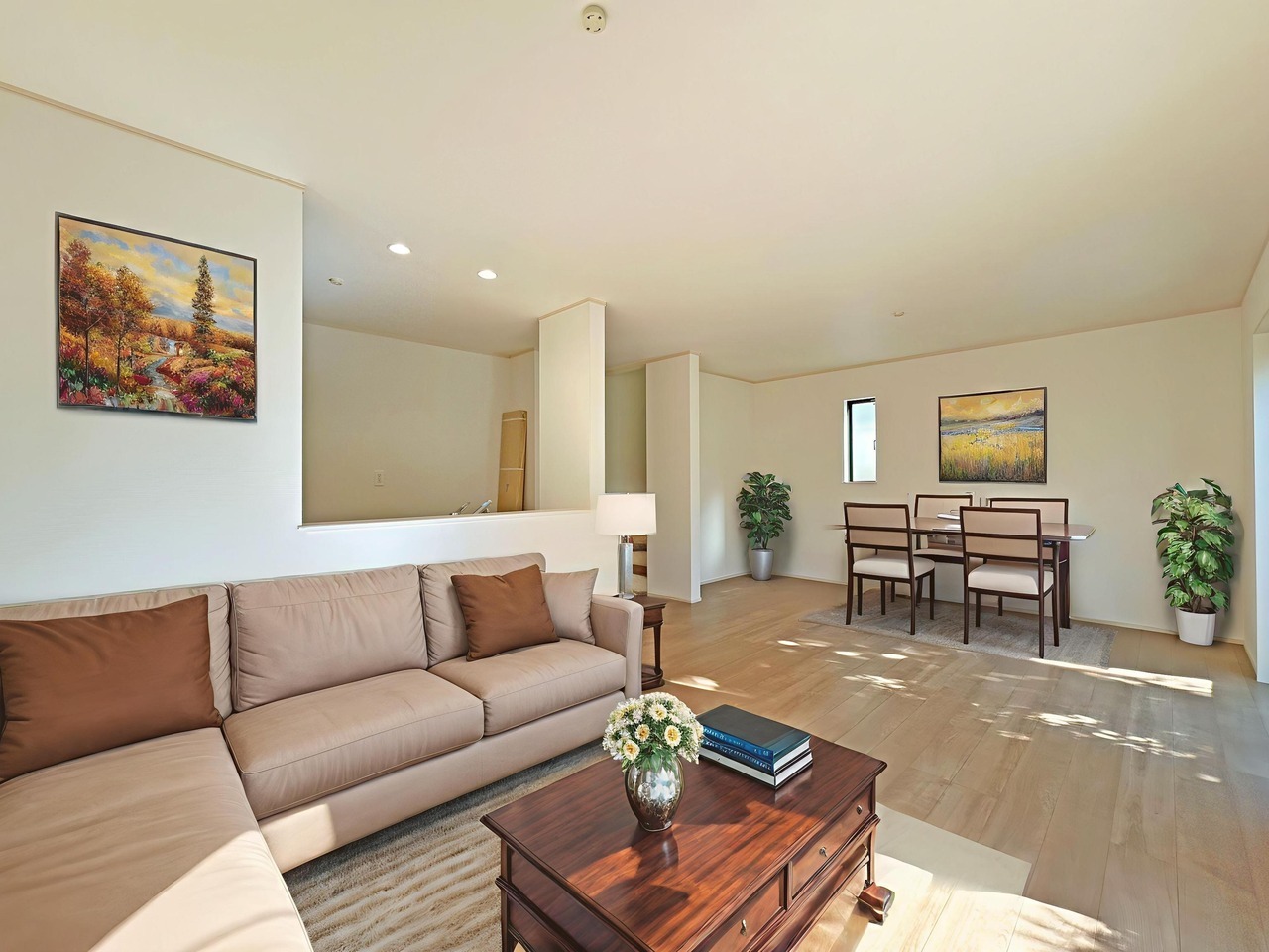 あると便利な食洗器が搭載されたシステムキッチンを採用!人気のカウンターキッチン設計でリビング全体を見渡せます。