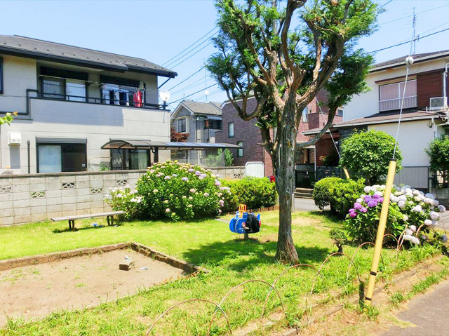 子供と一緒に遊べる「喜多見ふれあい広場」が徒歩13分!遊具が設備され、芝生エリアもあるアクティビティを愉しめる公園が徒歩圏内にある自然豊かな立地!