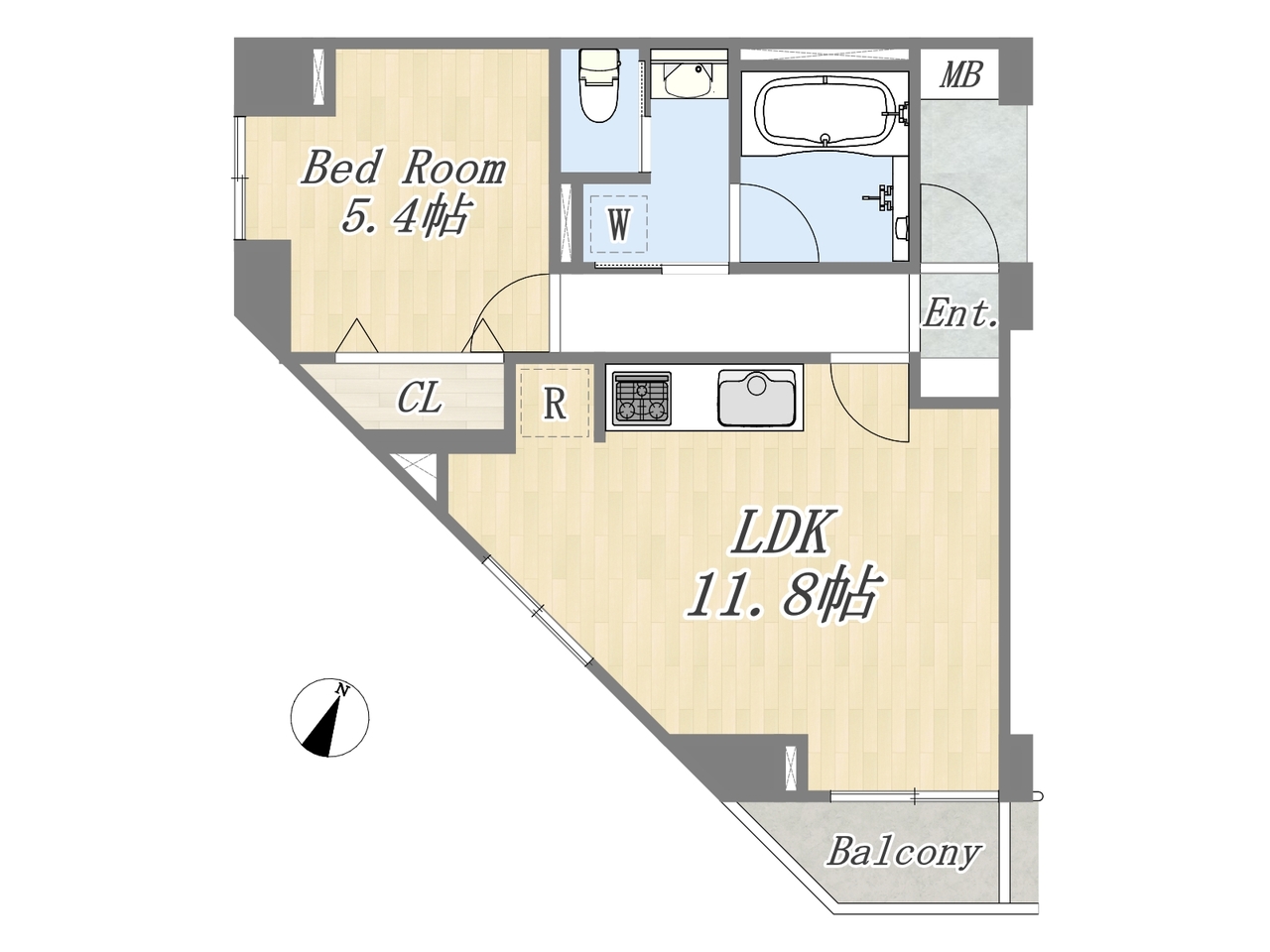 | 間取 | 1LDK (LDK11.8帖、洋室5.4帖) | ||