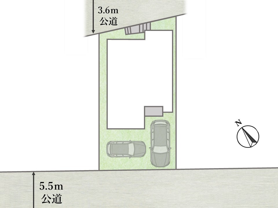 | 接道 | 南西側5.5M公道に接道 北東側3.6M公道に接道 |