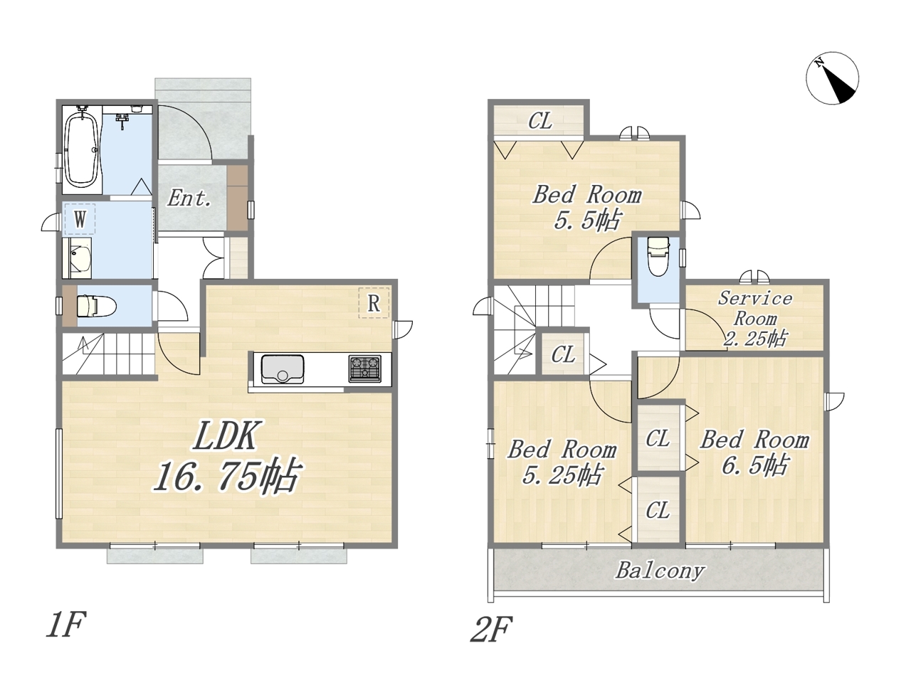 | 間取 | 3SLDK+カースペース2台可 (LDK16.75帖、洋室6.5帖、洋室5.5帖、洋室5.25帖、S2.25帖) | ||