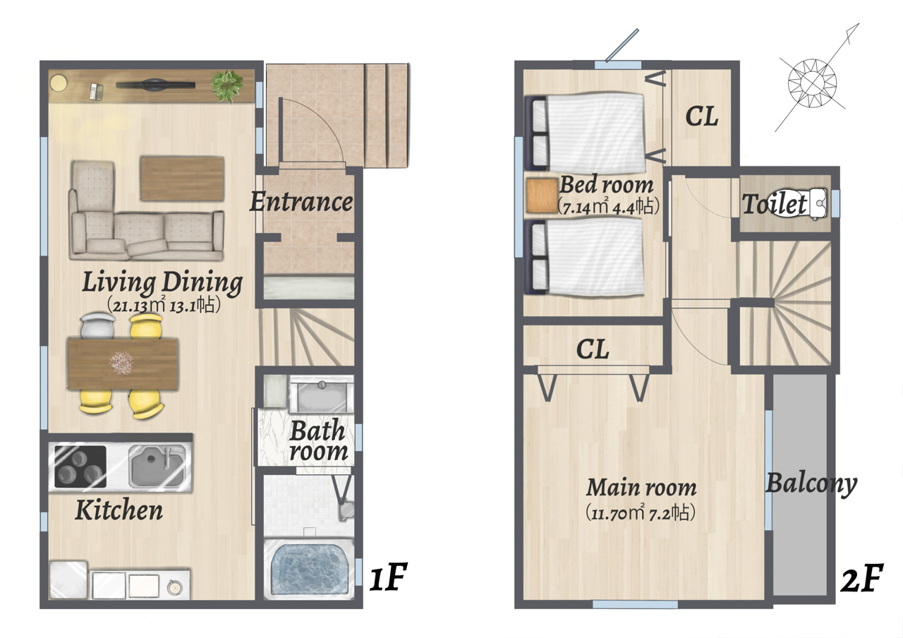 | 間取 | 2LDK+SIC (LDK13.1帖、洋室7.2帖、洋室4.4帖) | ||