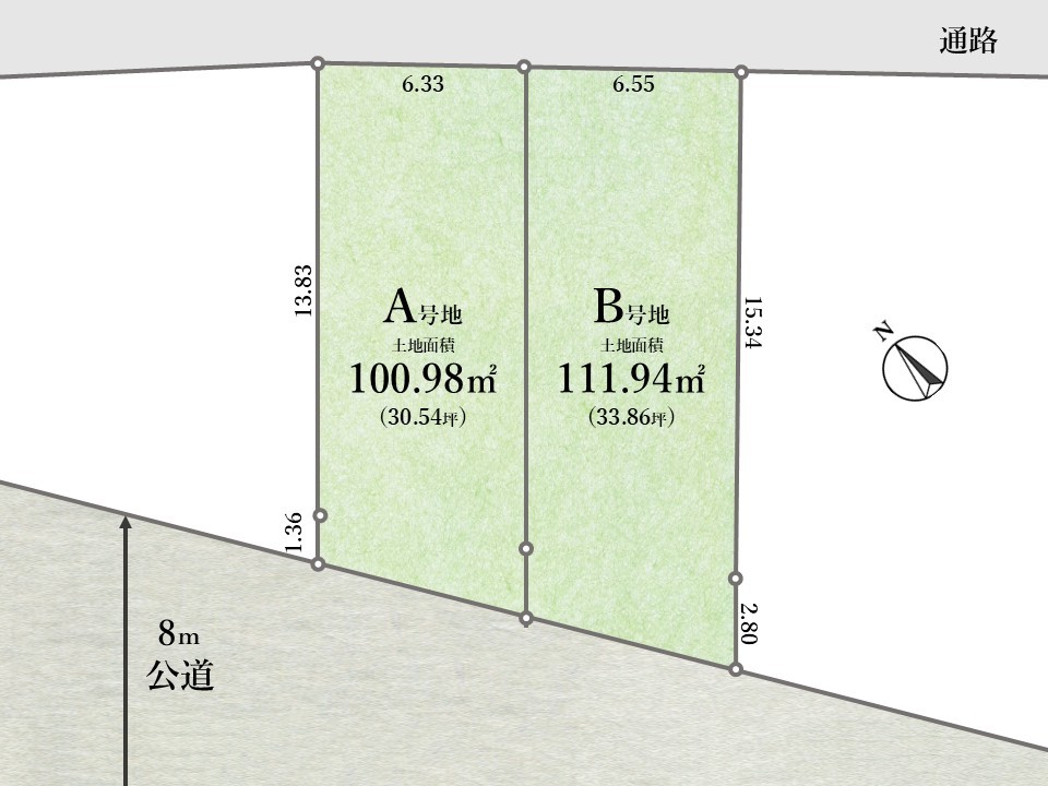 | 土地面積 | 100.98m² ~ 111.94m² 実測 | ||